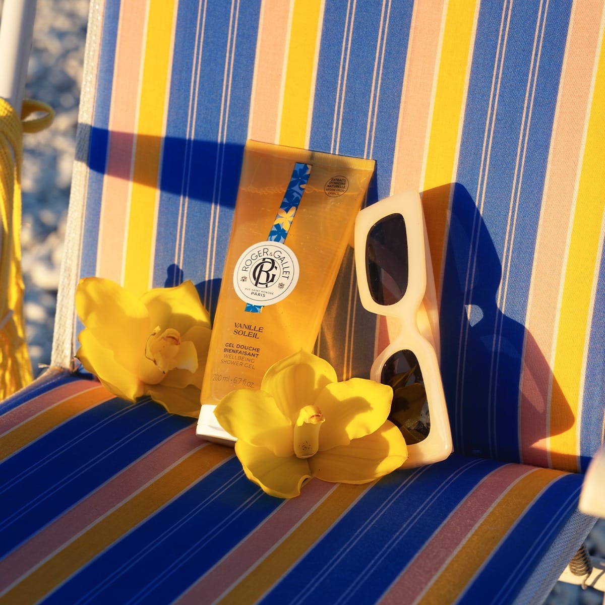 Entdecken Sie die Bad- und Körperpflegelinie Vanille Soleil. Nach der Verwendung des Duschgels und dem Auftragen der Körperlotion, parfümieren Sie sich mit Ihrem duftenden Wohlfühlwasser für einen lang anhaltenden und umhüllenden Duft ein.